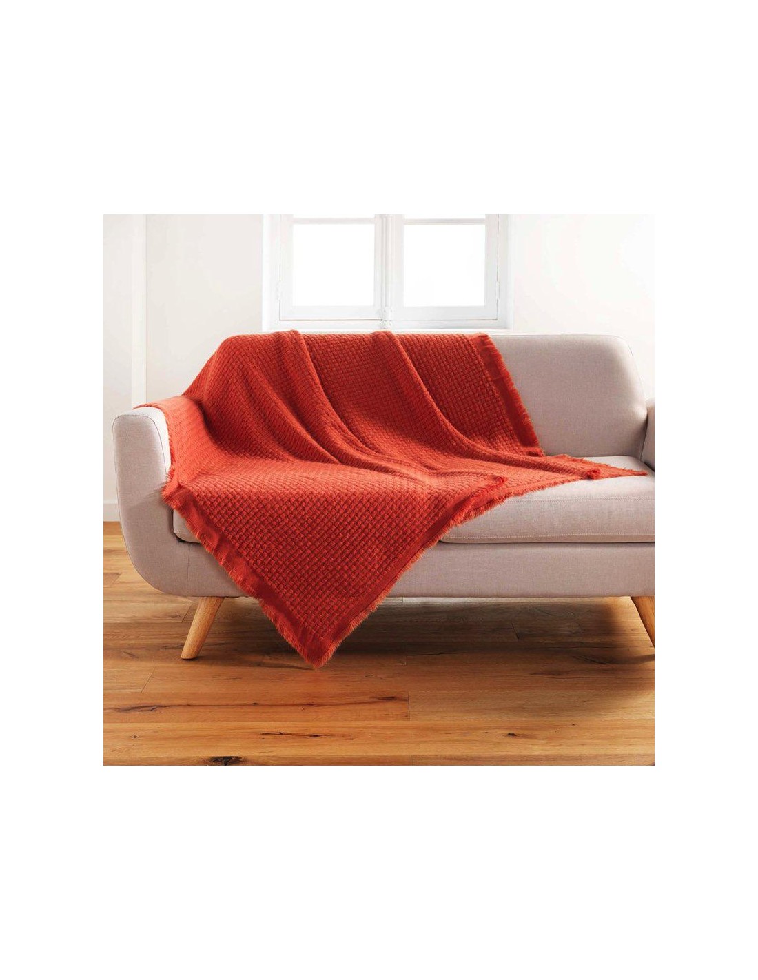 jete de fauteuil a franges 150 x 150 cm coton tisse lilia terracotta