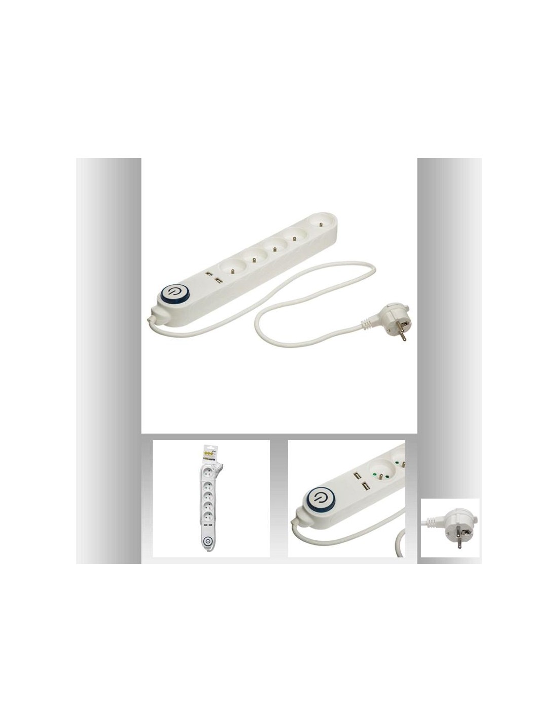 Multiprise bicouleur avec 4 prises, interrupteur on/off lumineux intégré. Longueur du céble 1,5 métre. Syséme de fixation coulissant au dos du produit. H05VV-F,3G1.0 - IP20 - MAX:3680W 16A/230V - Certifié NF/CE