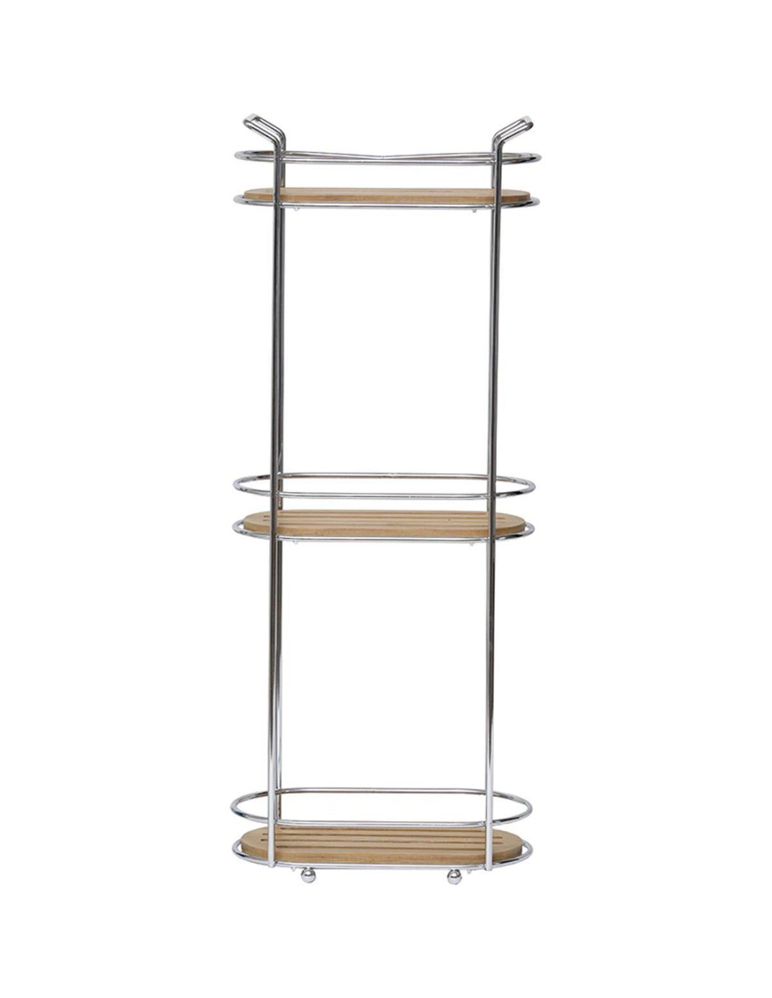 9165195 - etagere d'angle fil metal/bambou 3 niveaux - chrome/bambou
