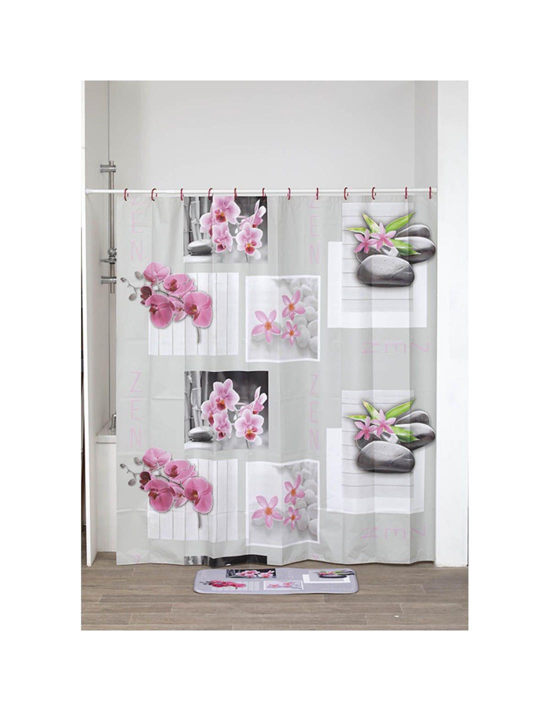 1103638 - rideau de douche peva 180x180 cm/12 anneaux blanc - garden party