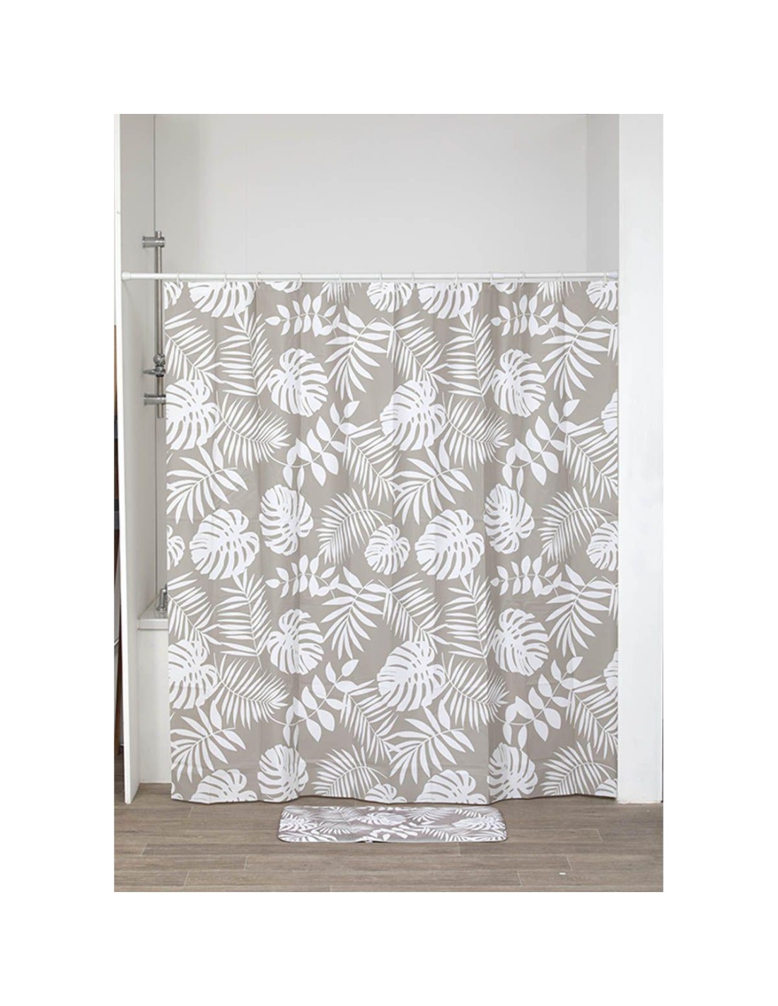 1205684 - rideau de douche polyester imprime 180x200 cm/12 anneaux pp blanc - na