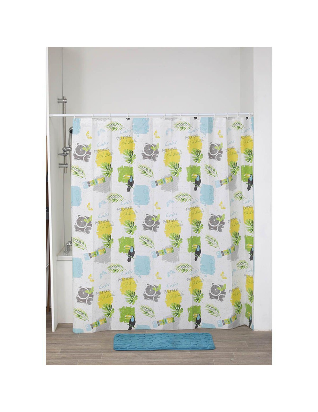 1205666 - rideau de douche polyester imprime 180x200 cm/12 anneaux pp blanc - sa