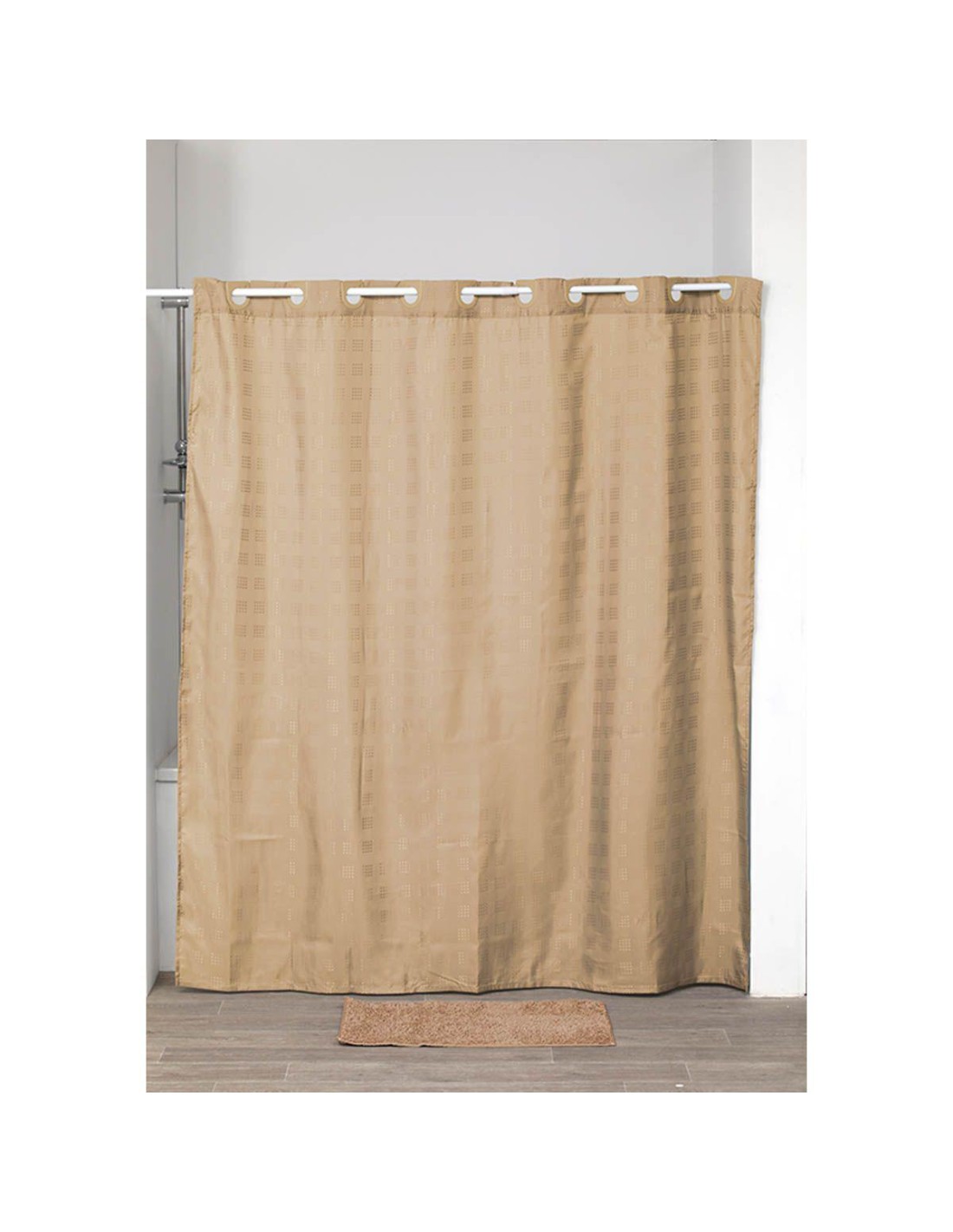 1207104-rideau de douche polyester avec oeillets integres 180x200cm - naturel