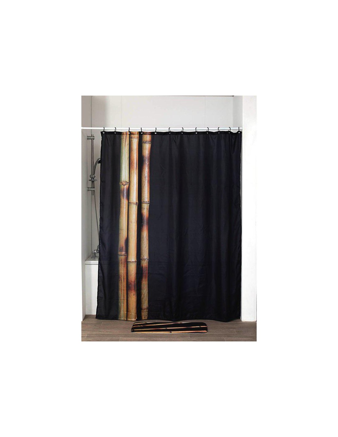 1207180 - rideau de douche polyester avec oeillets integres 180x200 cm - gris