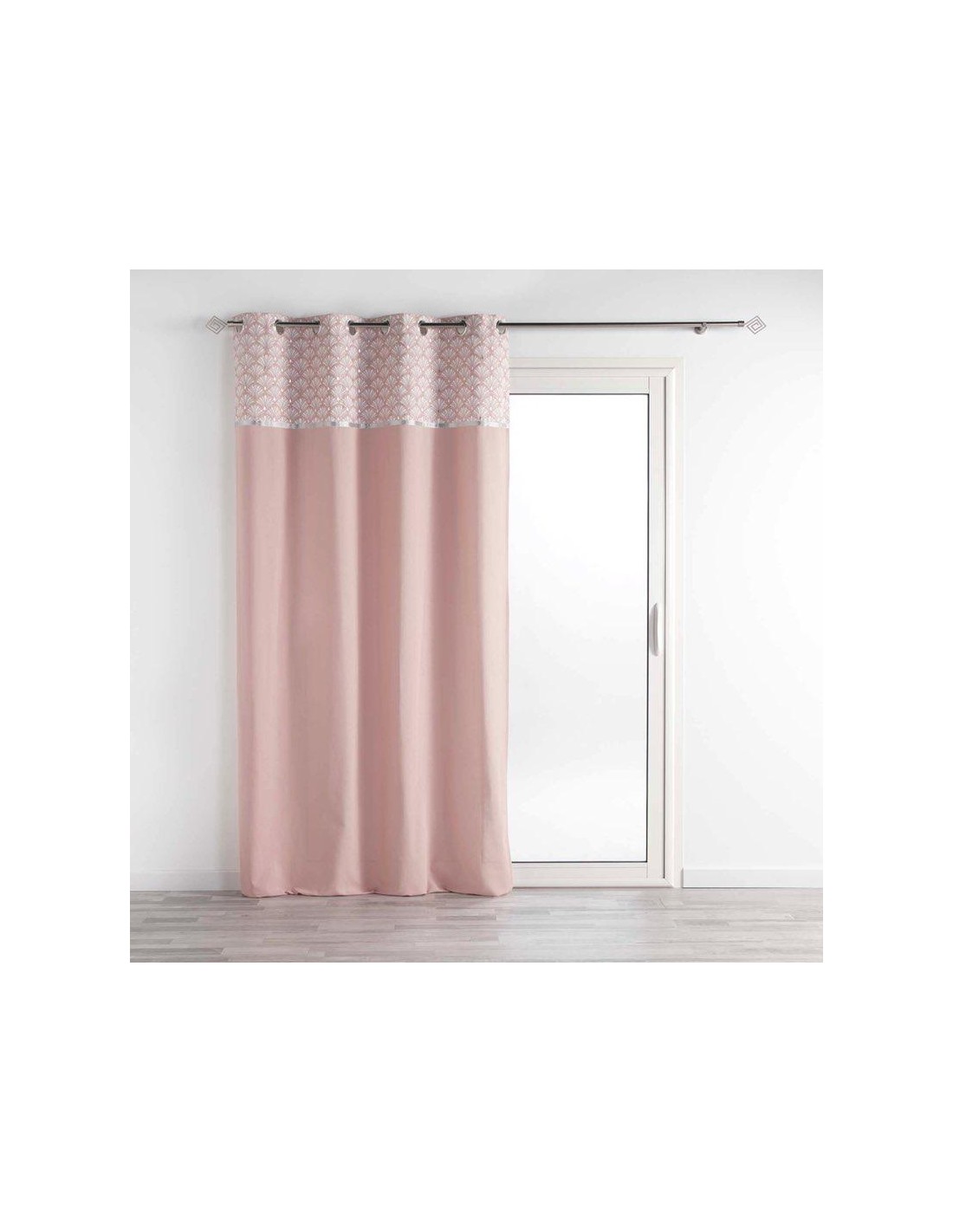 rideau a oeillets 140 x 240 cm coton uni+top imp. metallise artchic rose