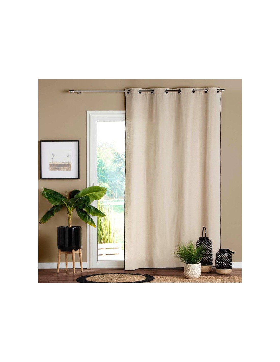 Matiére du rideau :100% CotonMatiére de la frange :100% JuteMatiére des oeillets :100% Acier inoxydableType d'accroche :8 OeilletsConseils d'entretien :Lavage é la main é 40éC max, Blanchiment interdit, Séchage en tambour interdit, Repasser é Té faible é 110éC max, Nettoyage é secDimensionsL. 140 x P. 1 x H. 260 cmMatiére du rideau :100% CotonMatiére de...