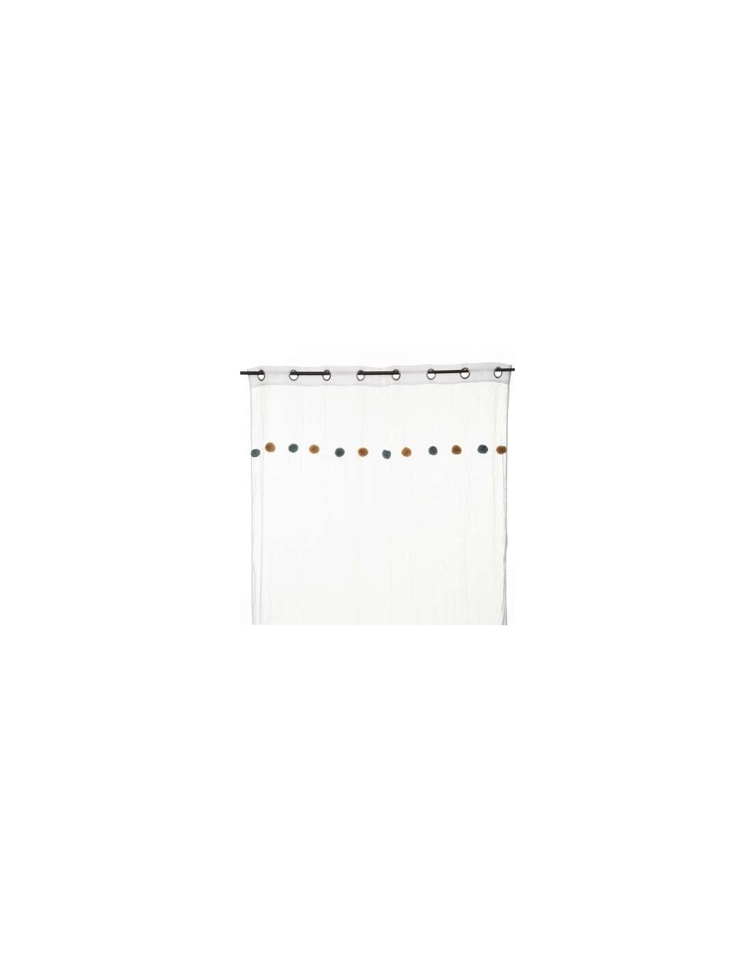 voilage pompons bleu ocre