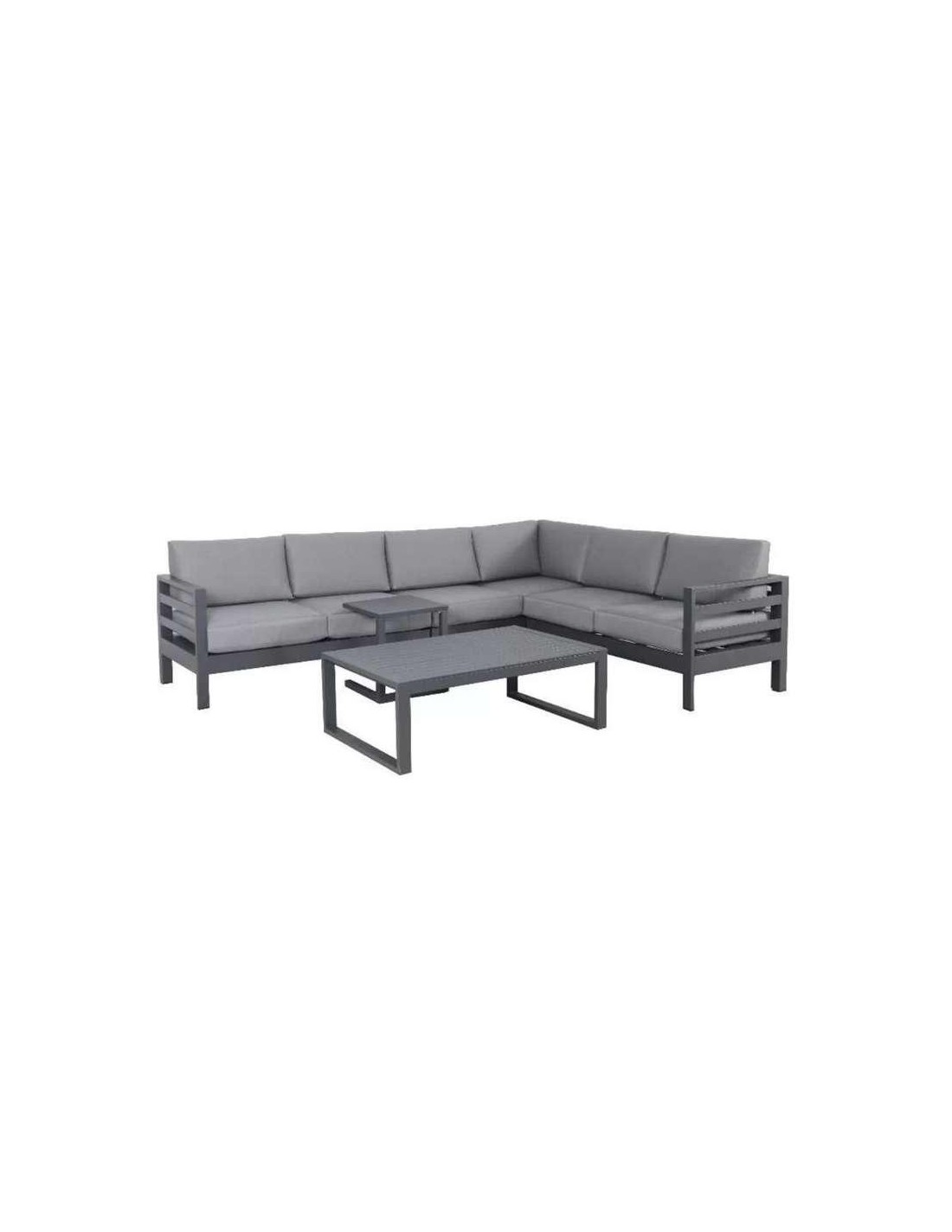 DimensionsMéridienne : L. 185 x P. 76 x H. 65 cmAngle : L. 99,5 x P. 99,5 x H. 65 cmPetite table : L. 63 x D. 63 x H. 27 cmGrande table : L. 77 x D. 77 x H. 31 cmMatiére de la structure AluminiumMatiére du coussin PolyesterMatiére du plateau Verreé monter soi-méme OuiNombre de places 7Coussins déhoussables OuiGrammage toile 245 g/méTraité déperlant...