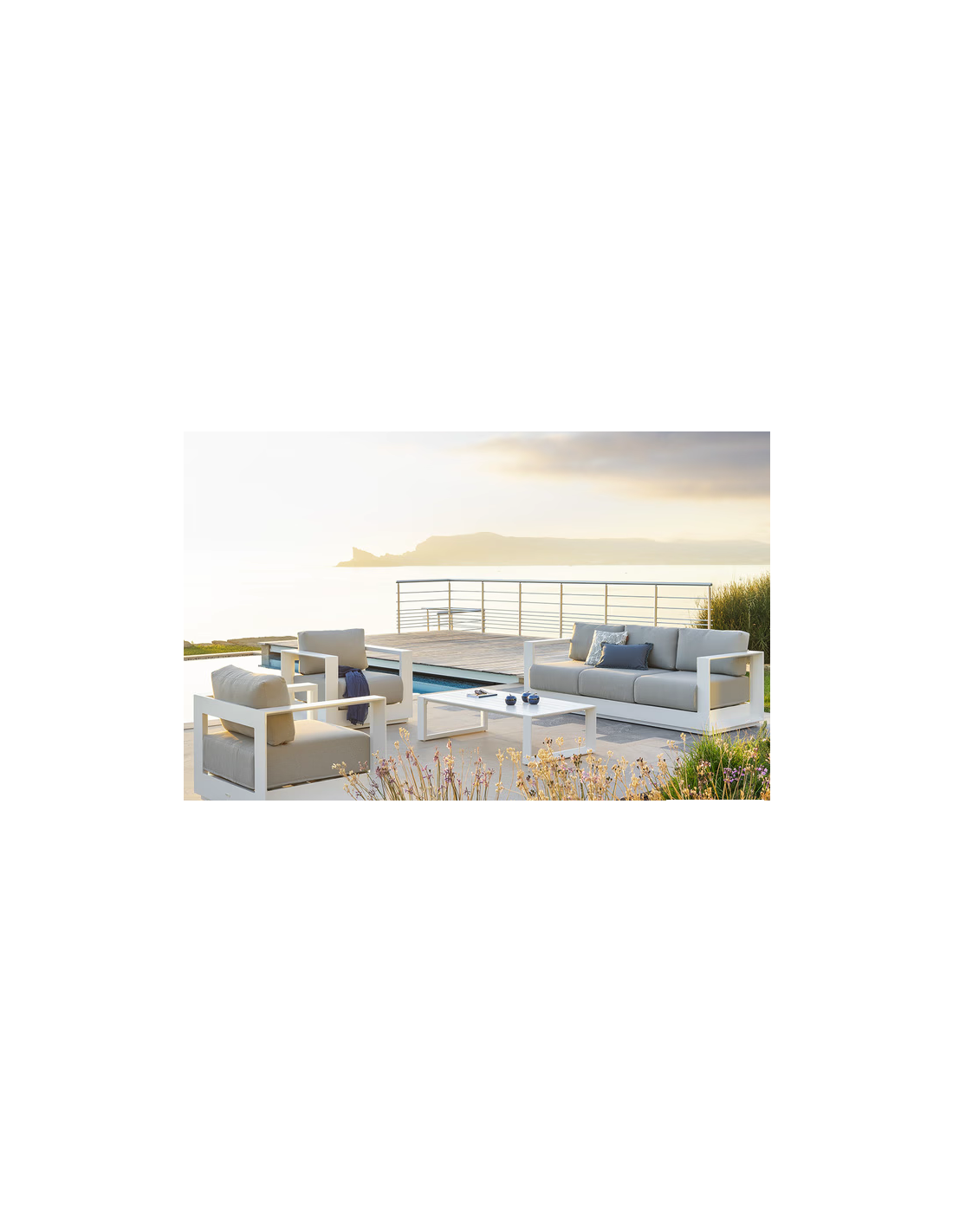 DimensionsFauteuil : L. 89 x P. 80 x H. 65 cm (17,8 kg)Canapé 3 places : L. 219 x P. 80 x H. 65 cm (37 kg)Table basse : L. 130 x P. 70 x H. 36 cm (9,6 kg)Hauteur d'assise : 19 cm (sans coussin) / 40 cm (avec coussin)Hauteur accoudoir : 65 cmCoussins d'assise : 65 x 79 x 20 cmCoussins dossier : 64 x 37 x 13 cmMatiére de la structure AluminiumMatiére du coussin PolyesterMatiére du plateau Aluminiumé monter soi-méme NonType de Traitement Traité époxyTemps de montage1 personne / 15 minGrammage 275 g/méPoids maximal autorisé par personne 110 kgCoussins déco NonCoussin déhoussables OuiNombre de coussin d'assise 5Nombre de coussin de dossier 5Poids 82,2 kgGarantie 5 ans OuiNombre de colis 2DimensionsFauteuil : L. 89 x P. 80 x H. 65 cm (17,8 kg)Canapé 3 places : L. 219 x P. 80 x H. 65 cm (37 kg)Table basse : L. 130 x P. 70 x H. 36 cm (9,6 kg)Hauteur d'assise : 19 cm (sans coussin) / 40 cm (avec coussin)Hauteur accoudoir : 65 cmCoussins d'assise : 65 x 79 x 20 cmCoussins dossier : 64 x 37 x 13 cmMatiére de la structure AluminiumMatiére du coussin PolyesterMatiére du plateau Aluminiumé monter soi-méme NonType de Traitement Traité époxyTemps de montage1 personne / 15 minGrammage 275 g/méPoids maximal autorisé par personne 110 kgCoussins déco NonCoussin déhoussables OuiNombre de coussin d'assise 5Nombre de coussin de dossier 5Poids 82,2 kgGarantie 5 ans OuiNombre de colis 2