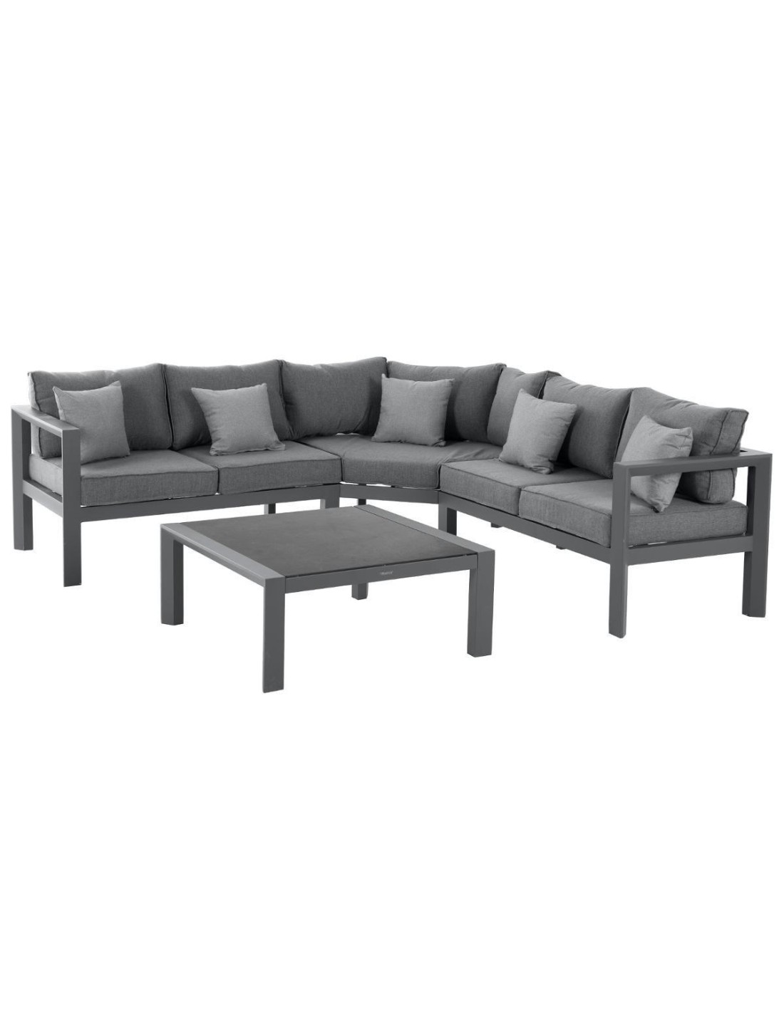 DimensionsMéridienne : L. 185 x P. 76 x H. 65 cmAngle : L. 99,5 x P. 99,5 x H. 65 cmPetite table : L. 63 x D. 63 x H. 27 cmGrande table : L. 77 x D. 77 x H. 31 cmMatiére de la structure AluminiumMatiére du coussin PolyesterMatiére du plateau Verreé monter soi-méme OuiNombre de places 7Coussins déhoussables OuiGrammage toile 245 g/méTraité déperlant...