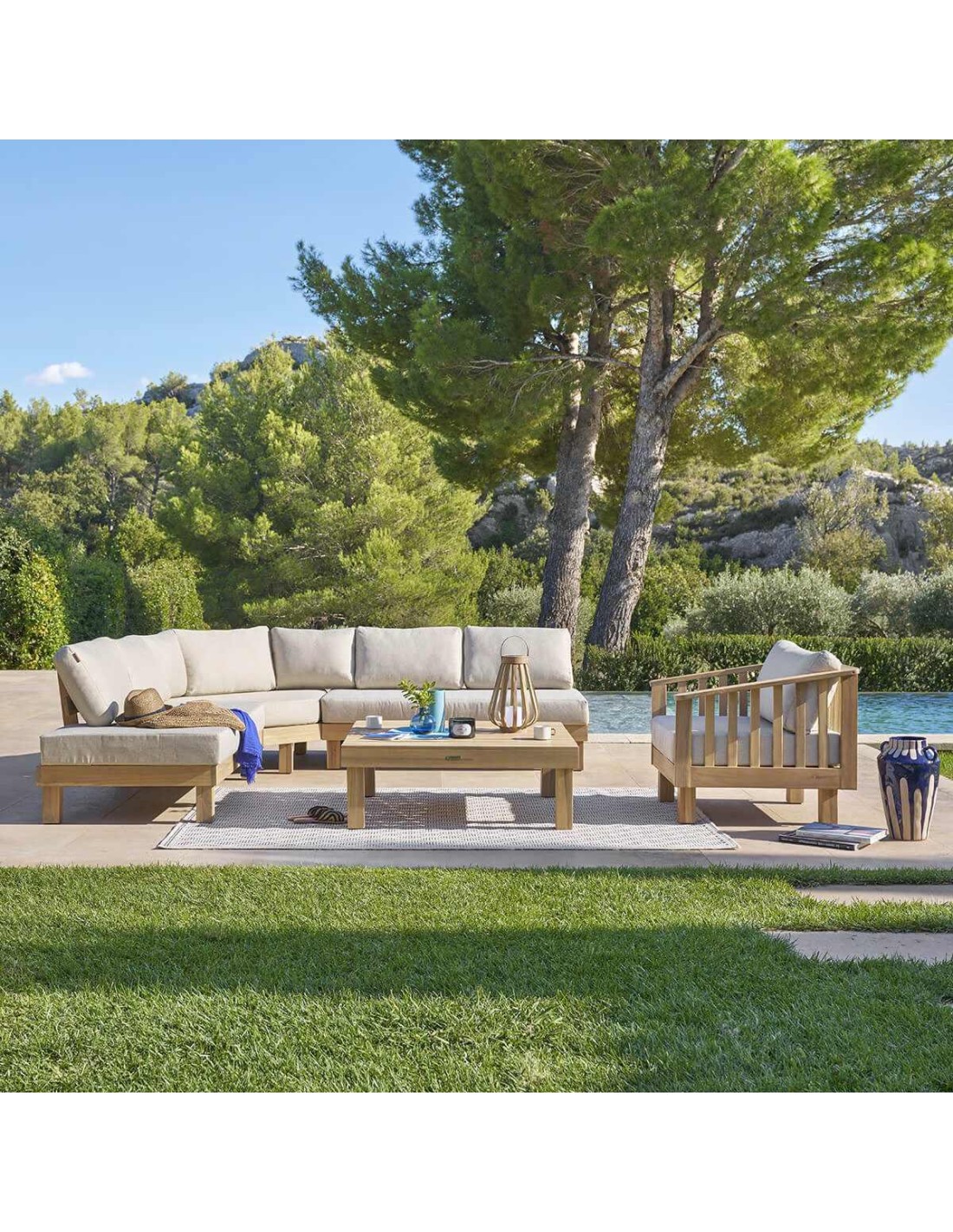 DimensionsMéridienne : L. 185 x P. 76 x H. 65 cmAngle : L. 99,5 x P. 99,5 x H. 65 cmPetite table : L. 63 x D. 63 x H. 27 cmGrande table : L. 77 x D. 77 x H. 31 cmMatiére de la structure AluminiumMatiére du coussin PolyesterMatiére du plateau Verreé monter soi-méme OuiNombre de places 7Coussins déhoussables OuiGrammage toile 245 g/méTraité déperlant...