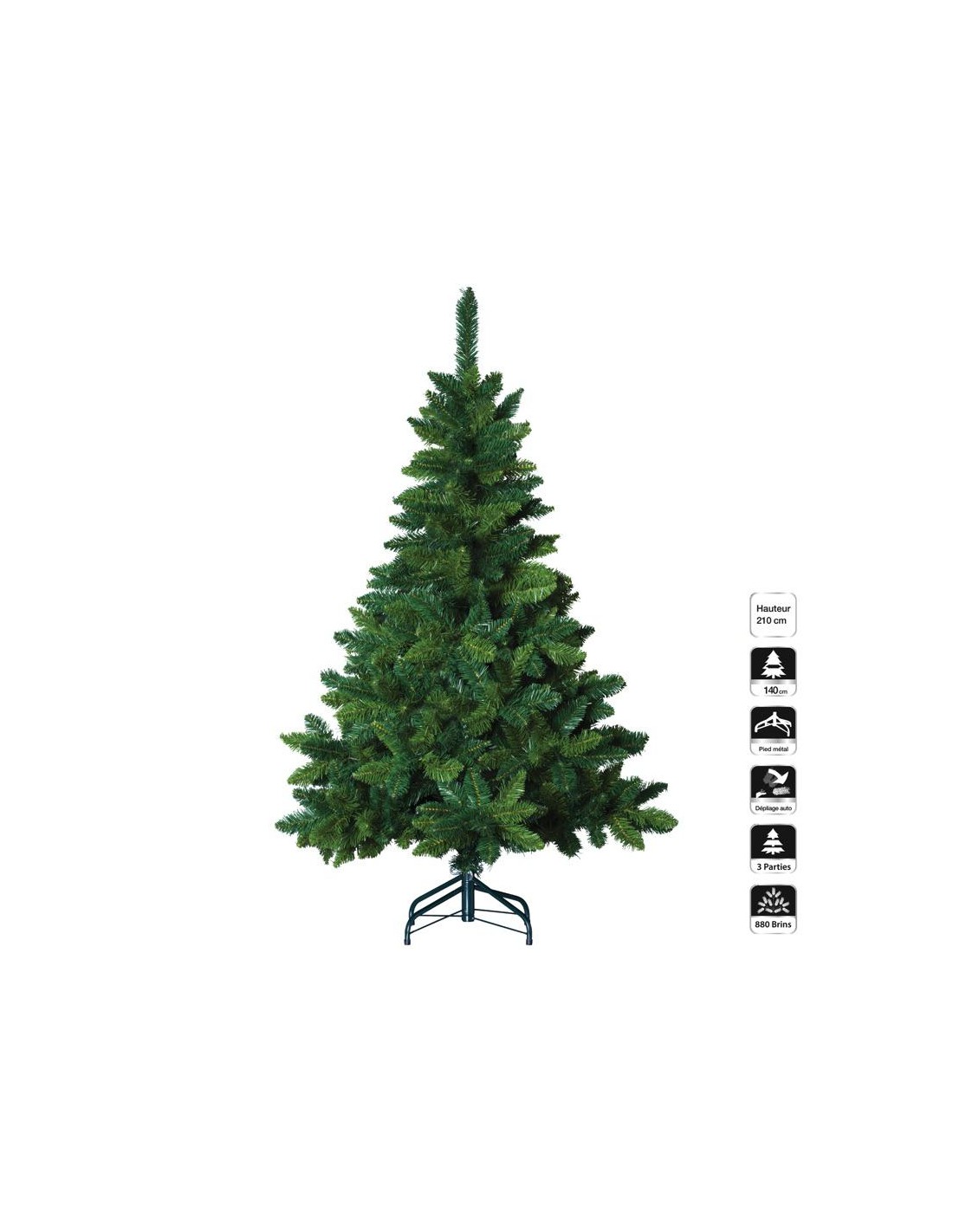 Dimension produit: D. 146 x H. 210 cm - Nombre de branches : 54 - Nombre de brins : 2640