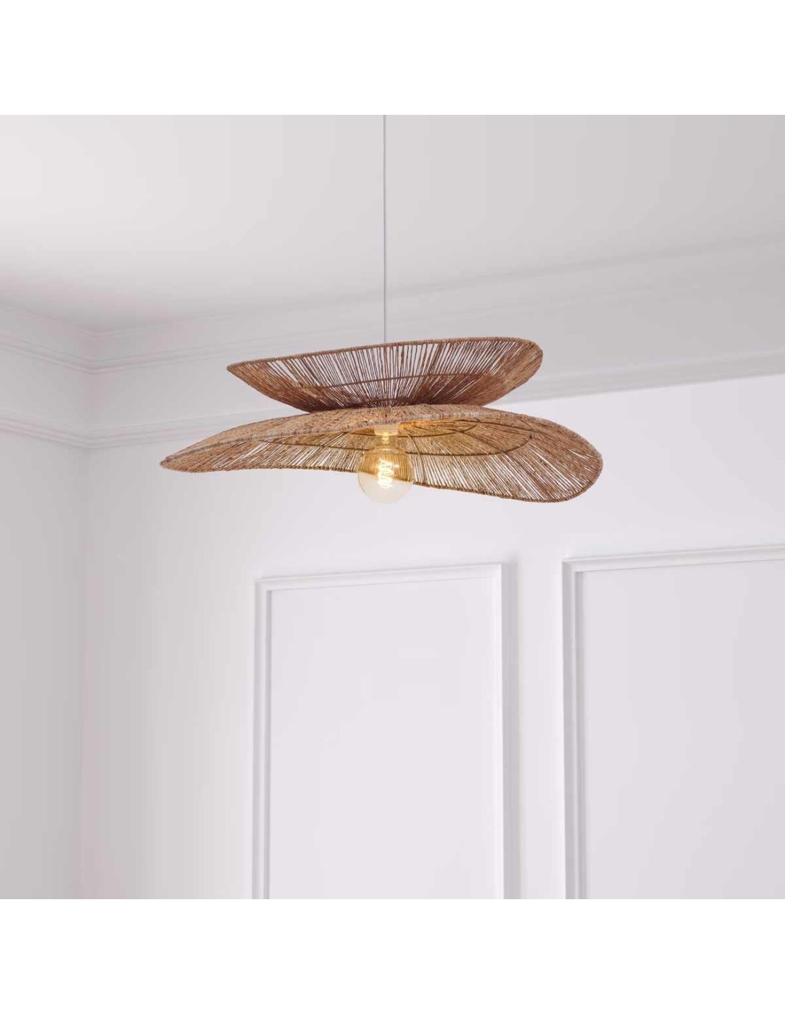 Dimension produit: L. 104 x P. 25 x H. 32 cm. Détail dimensions: Abat jour : D. 25 x H. 22 cm Longueur céble : 100 cm. Matiére: FER/MANGUIER/PVC_ Ampoule incluse : NON. Douille : E27. Puissance max : 25W. Classe : Y