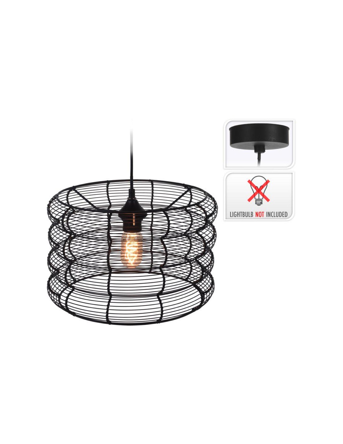 Dimension produit: D. 33 x H. 34 cm. Détail dimensions: Longueur céble : 80 cm. Matiére: FER/LIN/PVC_ Ampoule incluse : NON. Douille : E27. Puissance max : 40W. Hauteur ajustable : OUI