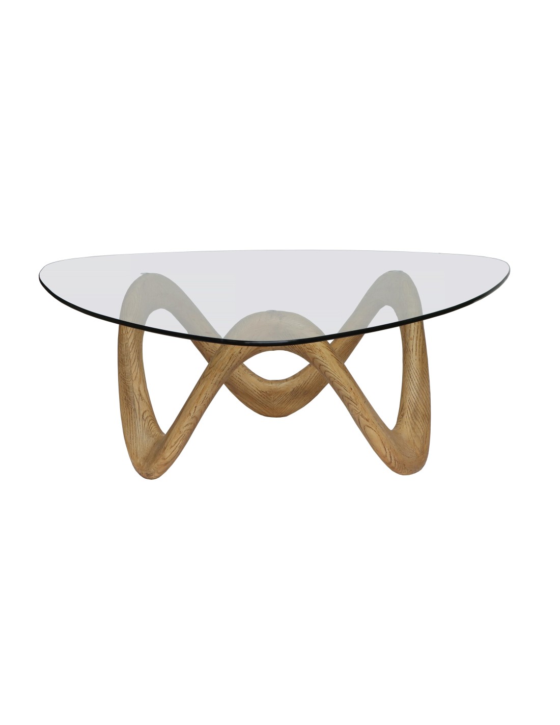 Table basse avec plateau en verre et pieds en bois noir - DIM : 80x60x44 cm