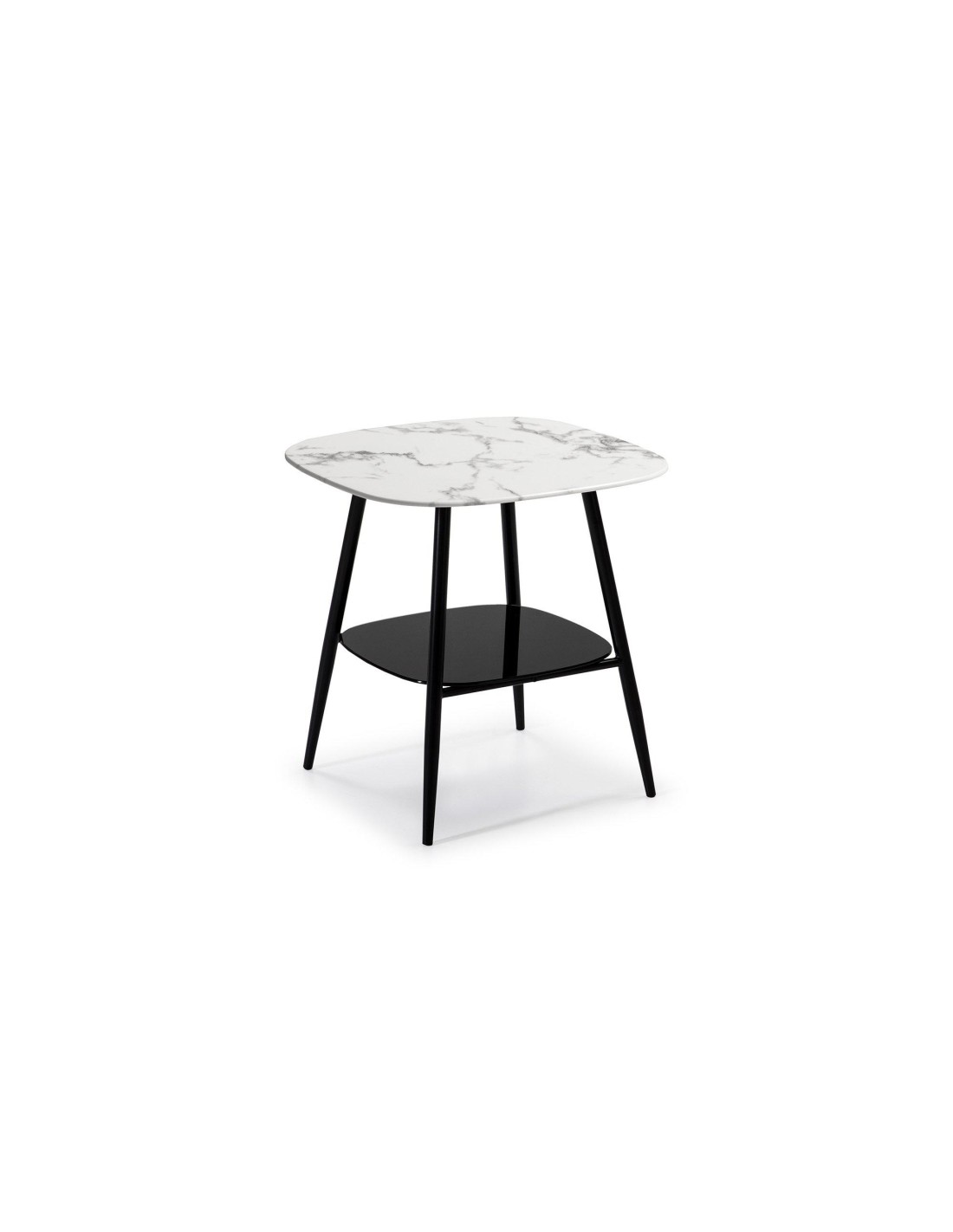 Dimensions : D. 55 x H. 48,5 cmMatiére de la structure : FerMatiére du dessus table : Verre trempé