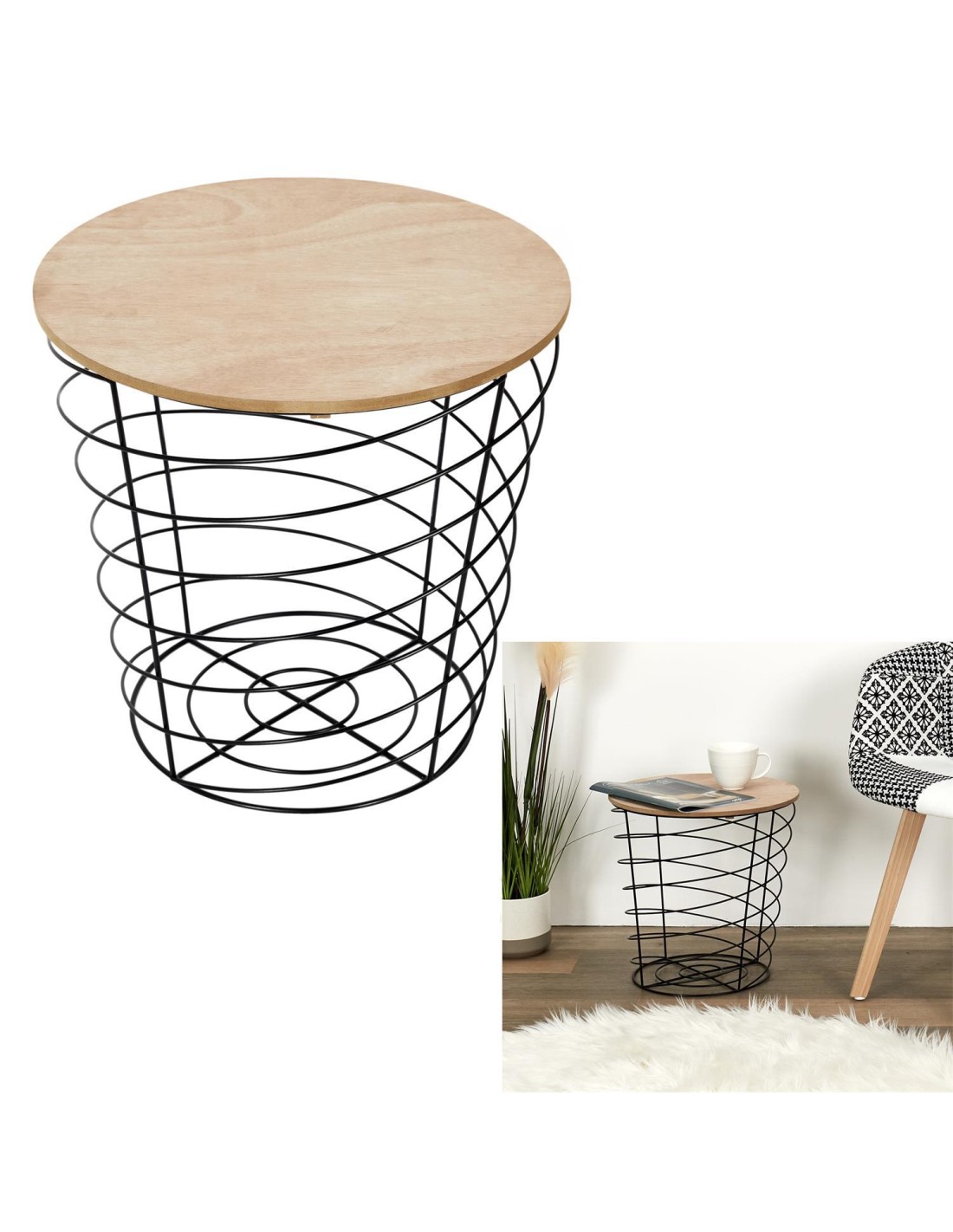 Dimensions : D. 41 x H. 40 cmMatiére du plateau : MDF - Panneau de fibres de boisMatiére de la structure : Fer