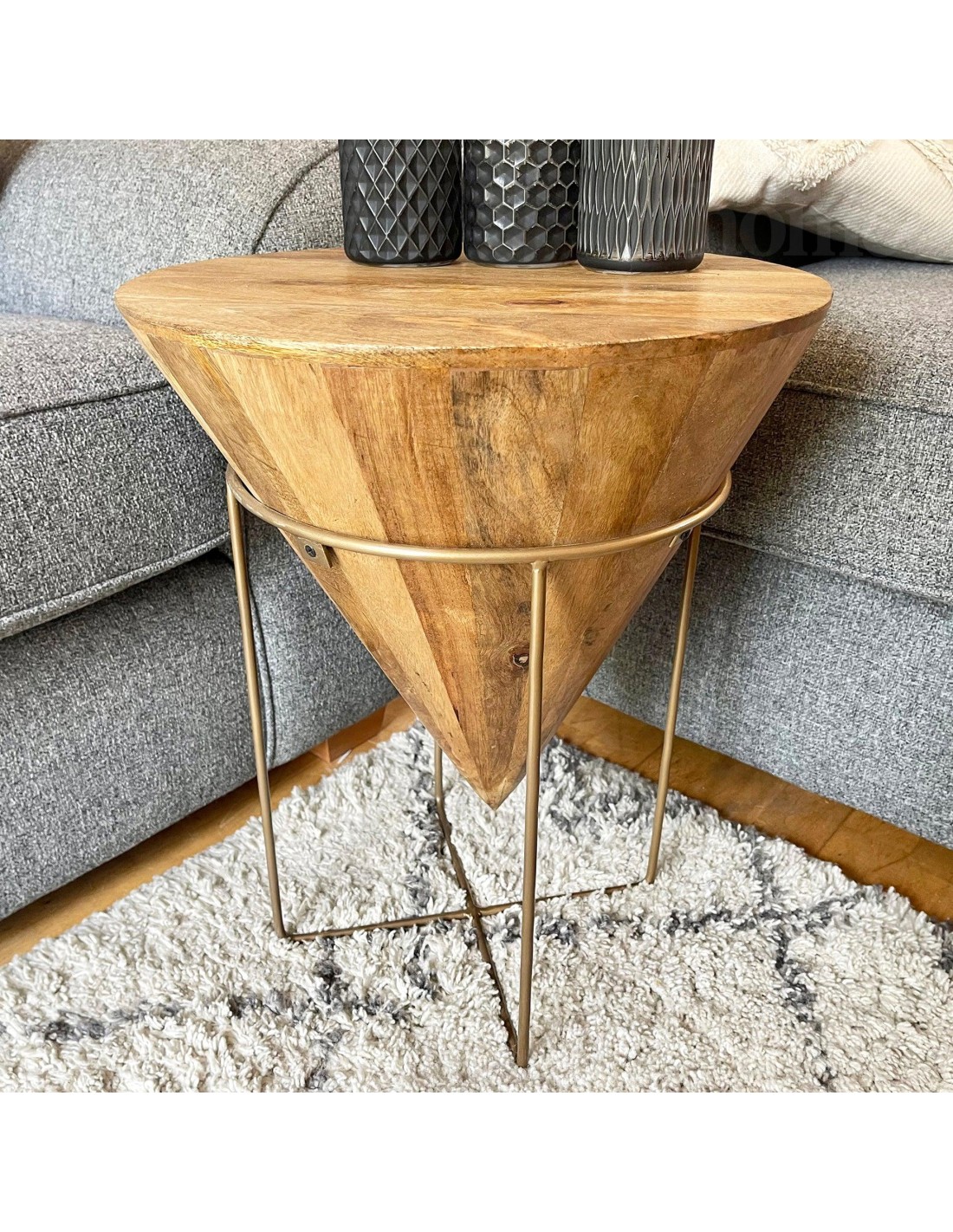 Table en bois de manguier avec pieds en métal doré. La table dappoint présente un design conique unique avec un cadre en fer offrant un look rustique moderne é votre salon. Cette piéce ronde faite é la main serait parfaite é cété de votre canapé pour une utilisation décorative et comme support de café ou de plantes soigné.Dimension : L.40 x P.40 x H.50 cm.Matiére & Structure : Bois de Manguier. Structure en métal doré.Table en bois de manguier avec pieds en métal doré. La table dappoint présente un design conique unique avec un cadre en fer offrant un look rustique moderne é votre salon. Cette piéce ronde faite é la main serait parfaite é cété de votre canapé pour une utilisation décorative et comme support de café ou de plantes soigné.Dimension : L.40 x P.40 x H.50 cm.Matiére & Structure : Bois de Manguier. Structure en métal doré.