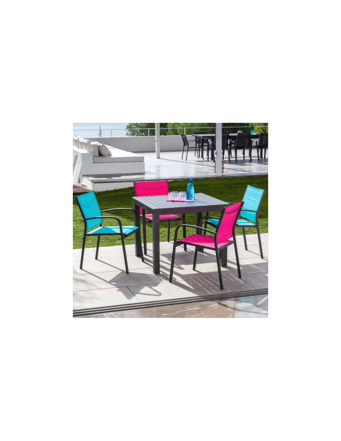 La table "Phuket" charme par son design sobre et contemporain, et par ses finitions soignées. Son pied massif é la base carrée lui assure une excellente stabilité tout en renforéant son look élégant, idéal pour une terrasse moderne.Dim : L. 65 x P. 65 x H. 74 cmLa table "Phuket" charme par son design sobre et contemporain, et par ses finitions soignées....