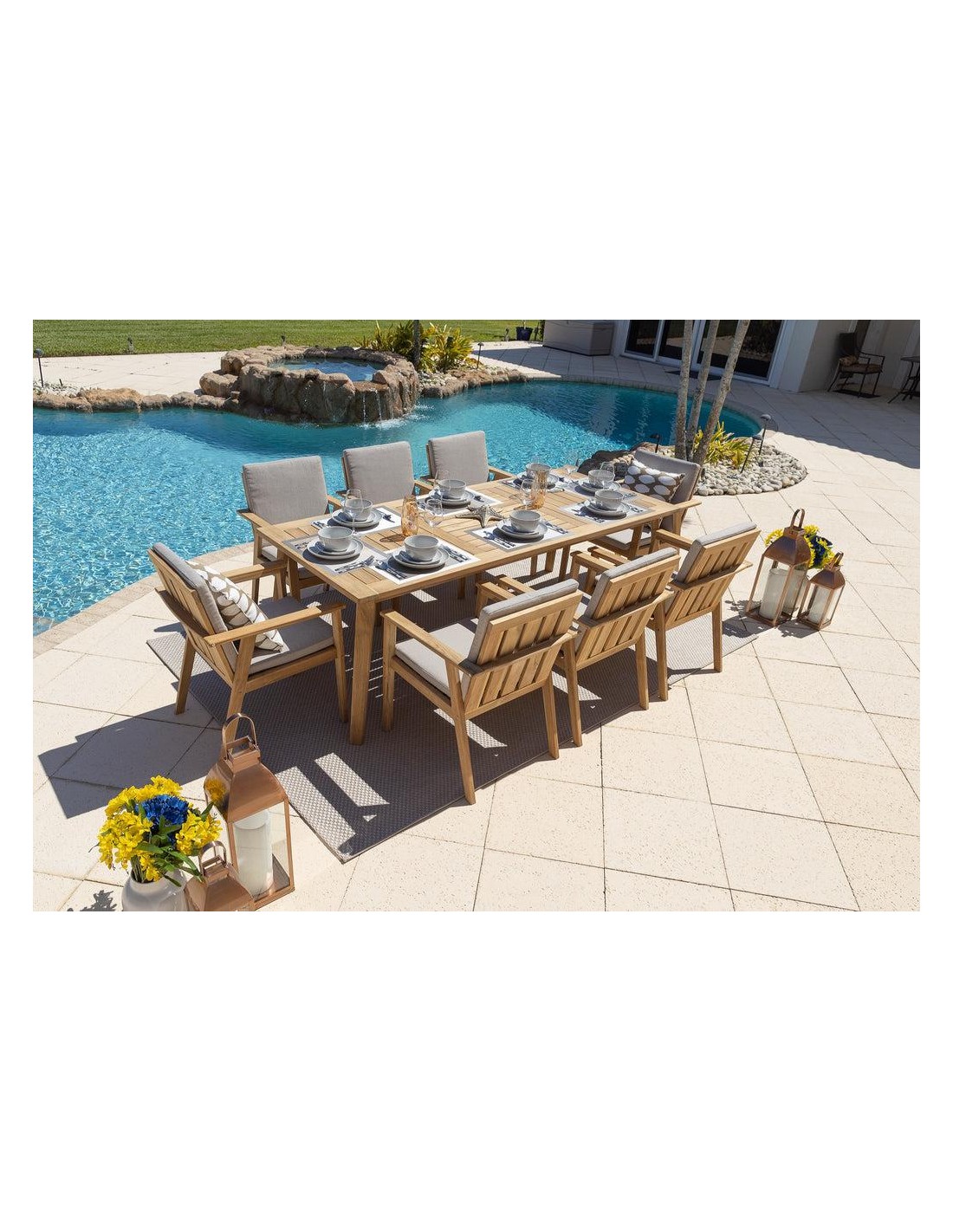 DimensionsL. 220/279 x P. 113 x H. 76 cmDotée d'un plateau é rallonge automatique, cette table s'adapte é tous vos besoins. Légére et facile é manipuler, elle vous offrira une extension de 59 cm.Passant de 220 é 279 cm, elle peut accueillir jusqu'é 10 personnes. Cette table posséde en outre des pieds réglables.Entiérement réalisée en aluminium, la table...