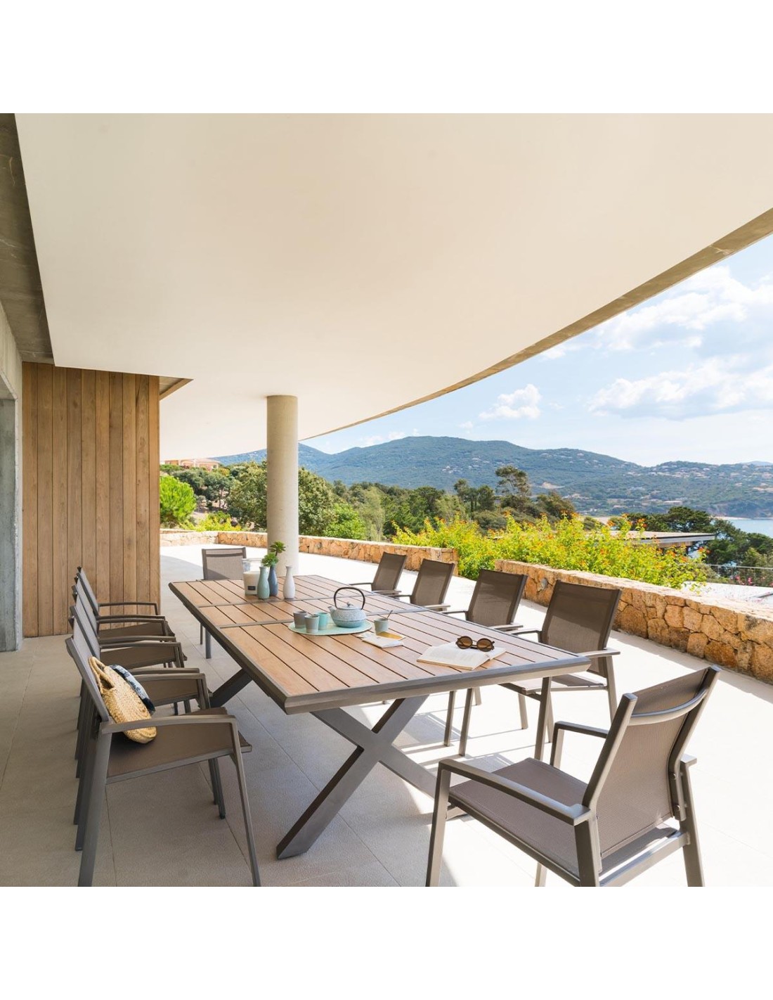 Dimensions L. 135/270 x l. 90 x H. 75 cmCette table donnera une touche contemporaine é votre extérieur avec son effet lattes en bois. Elle s'intégrera parfaitement dans tous les types d'extérieurs.Gréce é son traitement époxy, l'entretien de la table est aisé. Elle résistera aux pluies légéres et é la rouille.Dimensions L. 135/270 x l. 90 x H. 75...