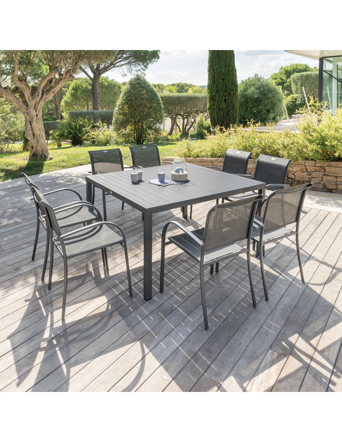 L. 135/270 x P. 90 x H. 75 cmProfitez pleinement de vos retrouvailles avec cette grande table extensible pouvant accueillir jusqu'é 10 personnes. Gréce é sa rallonge superposée coulissante, cette table passe de 135 é 270 cm de long en un seul geste. Le systéme dessus-dessous de l'extension combinée é la légéreté de la structure en aluminium facilitera la...