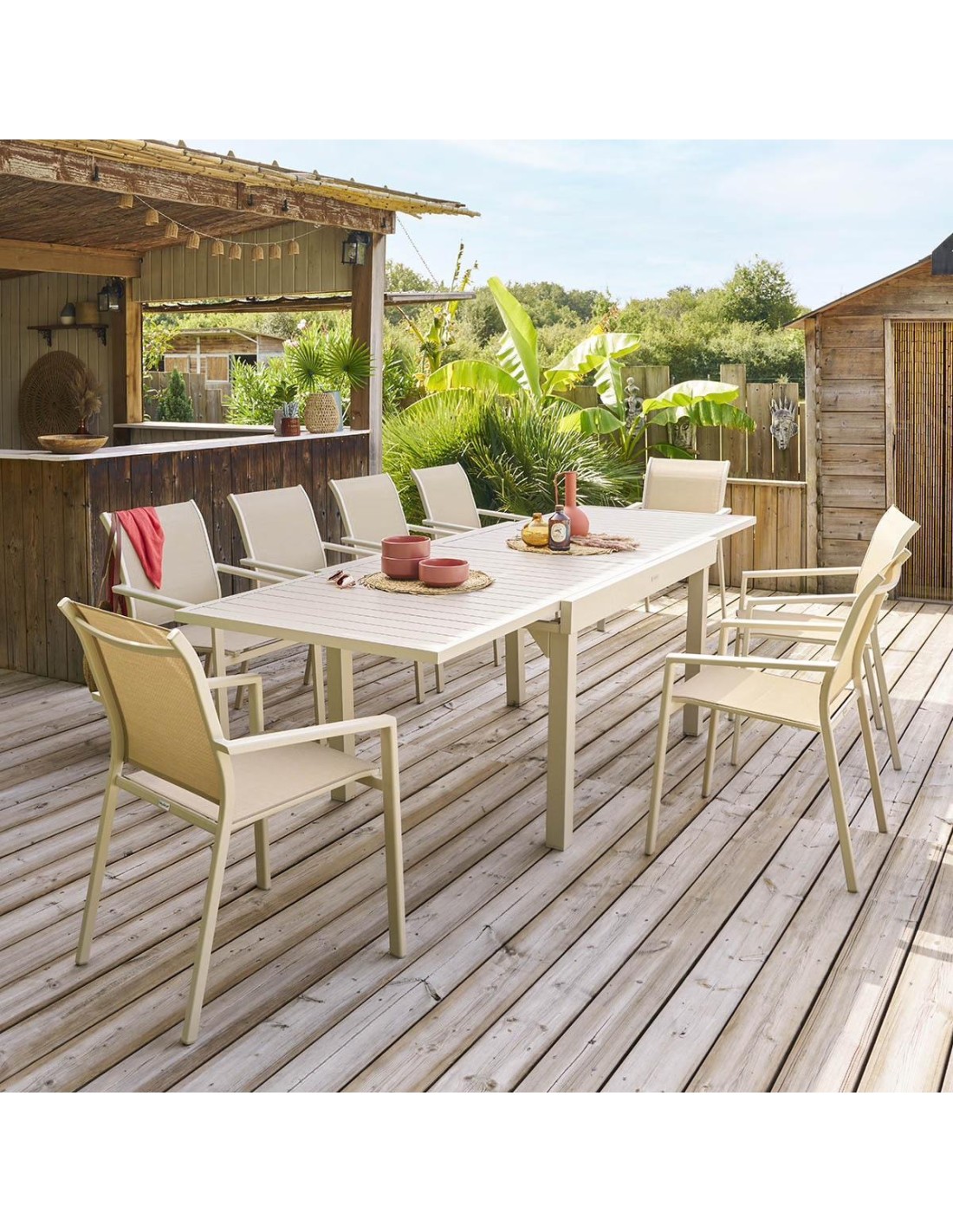 Caractéristiques du produitAluminium enduit de poudre résistant é la rouillePlateau de table é manger en lattes FSC AcaciaFaible entretienPieds réglables sur tableDIMENSIONS:135-270 cm de long x 90 cm de large x 75 cm de hautCaractéristiques du produitAluminium enduit de poudre résistant é la rouillePlateau de table é manger en lattes FSC AcaciaFaible...