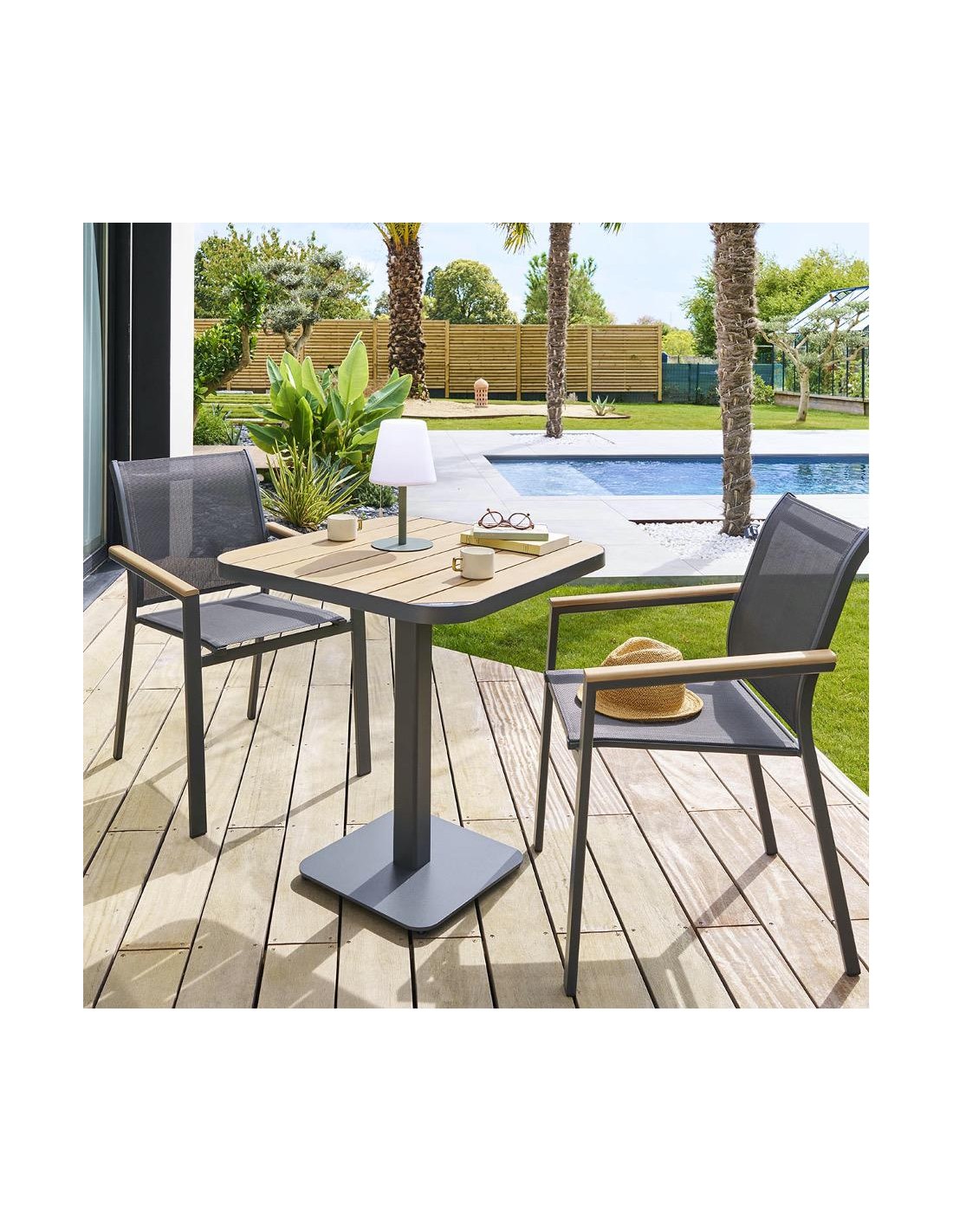Dimensions :L. 70,5 x P. 70,5 x H. 75 cmPoids: 18,5 kgMatiére de la structure : Aluminium traité époxyMatiére du plateau : AcaciaMatiére du/des pied(s) : Acier traité époxyNombre de places : 2Traitement anti-rouille époxy : Ouié monter soi-méme : OuiDimensions :L. 70,5 x P. 70,5 x H. 75 cmPoids: 18,5 kgMatiére de la structure : Aluminium traité époxyMatiére du plateau : AcaciaMatiére du/des pied(s) : Acier traité époxyNombre de places : 2Traitement anti-rouille époxy : Ouié monter soi-méme : Oui