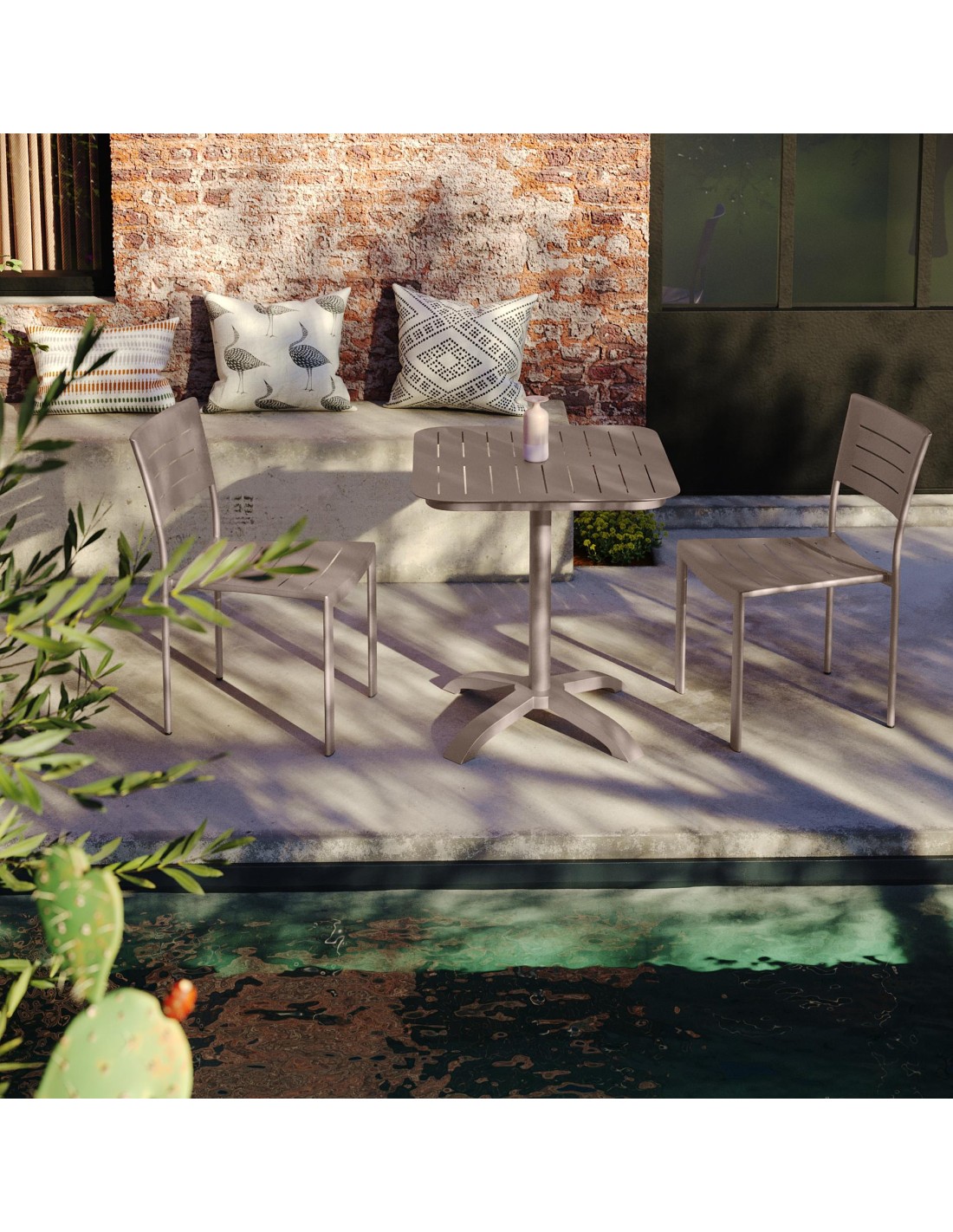 Table d'extérieur COME sur base ronde avec plateau carréDimensions : 70X70X73CMTable d'extérieur COME sur base ronde avec plateau carréDimensions : 70X70X73CM