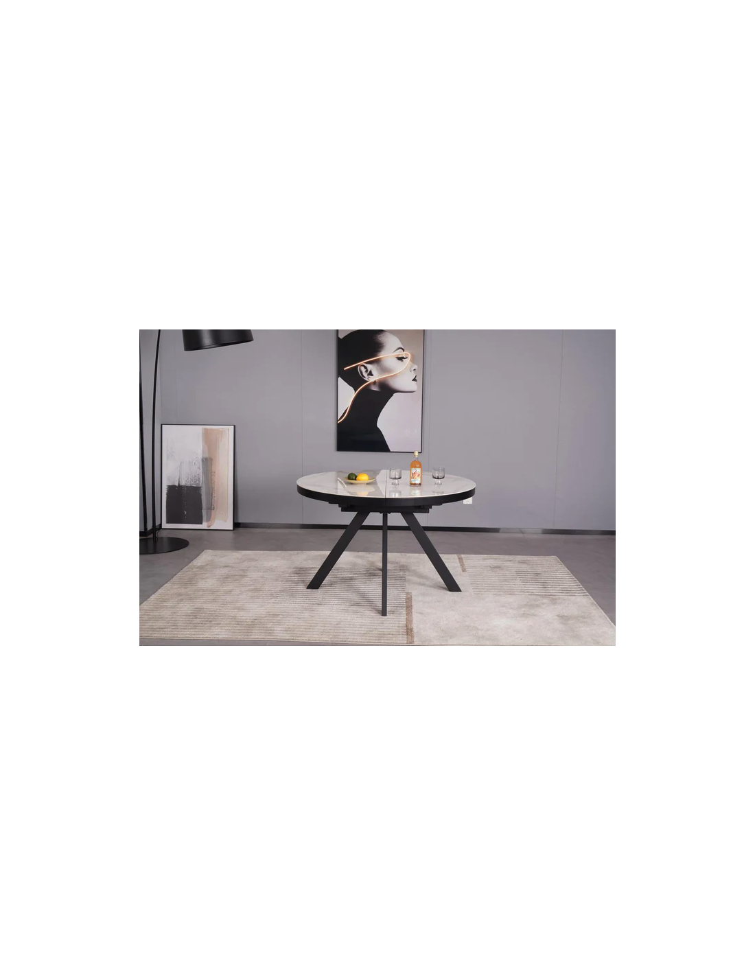 Dimension Diamétre 120-160x 120x 76 cmPlateau mdf en. VeenerPieds en métalDimensionDiamétre 120-160x 120x 76 cmPlateau mdf en. VeenerPieds en métal
