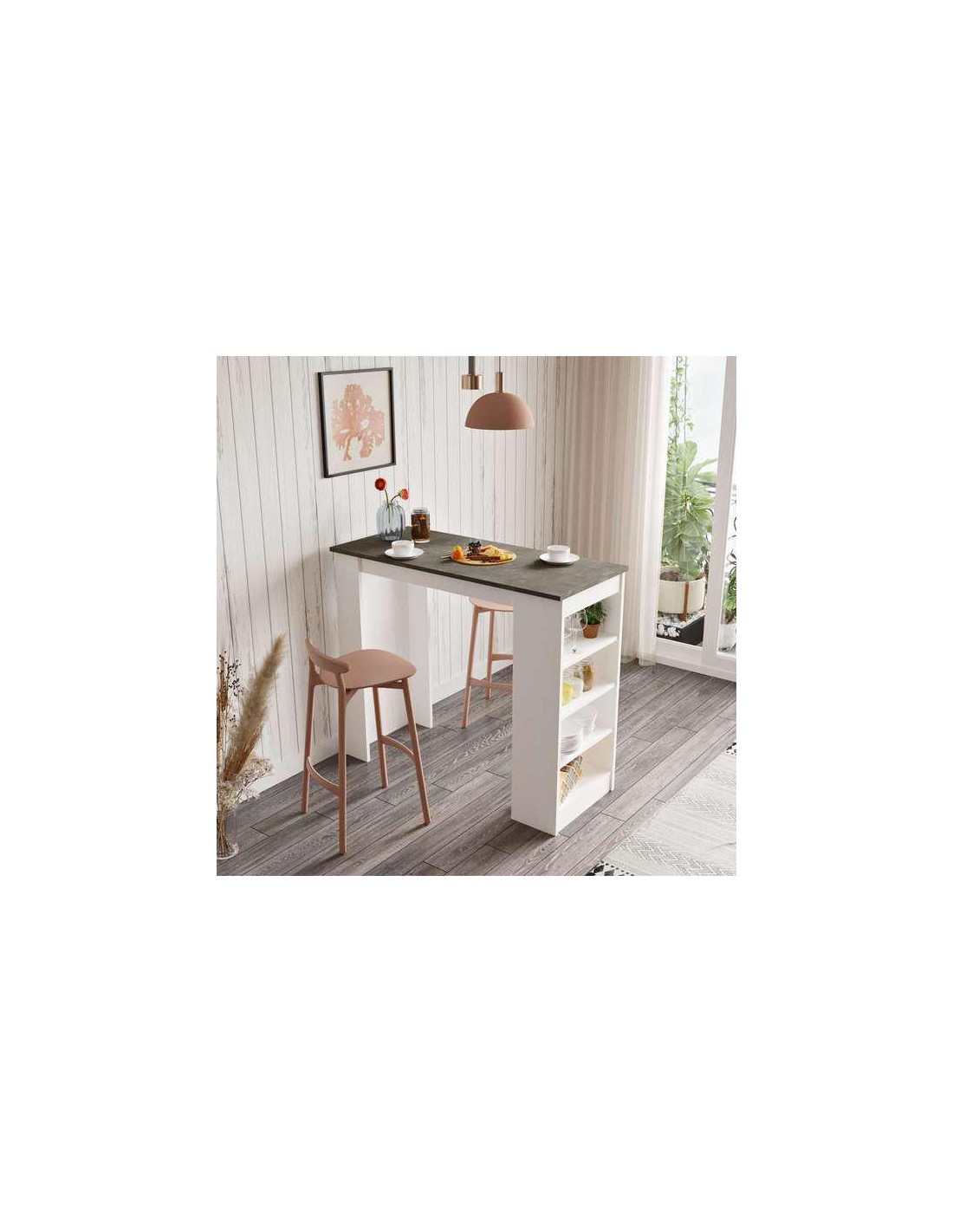 Table de bar existe en 2 colorisCette belle table de bar CREA est faite de panneaux de particules recouverts de mélamine résistant .La table peut étre utilisée aussi bien dans la cuisine, dans la salle familiale que dans le salon, et elle est conéue avec 3 étagéres avec un espace pour ranger diverses choses et caisses.Table de bar existe en 2 colorisCette...