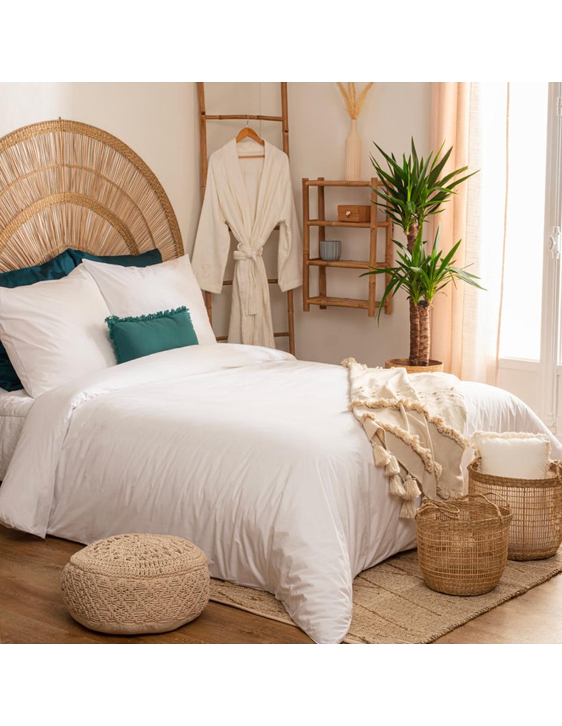 1643367 - taie d'oreiller volant plat 50 x 70 cm uni 57 fils lina petrole +point