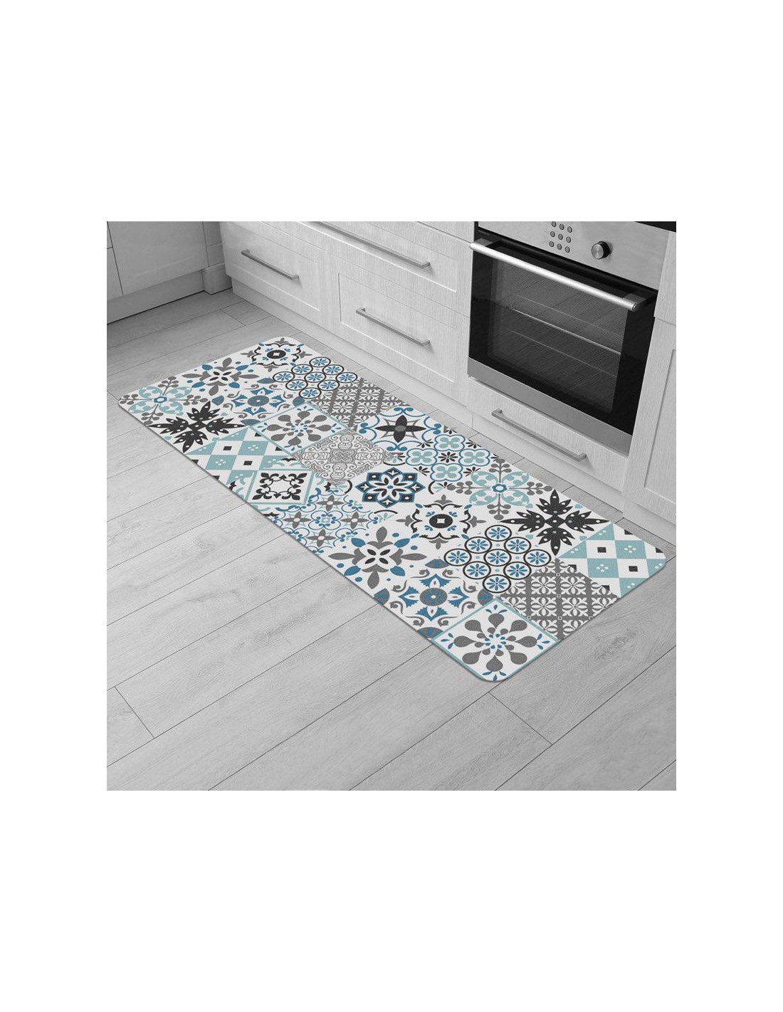 tapis rectangle 45 x 120 cm mousse imprimee salou bleu