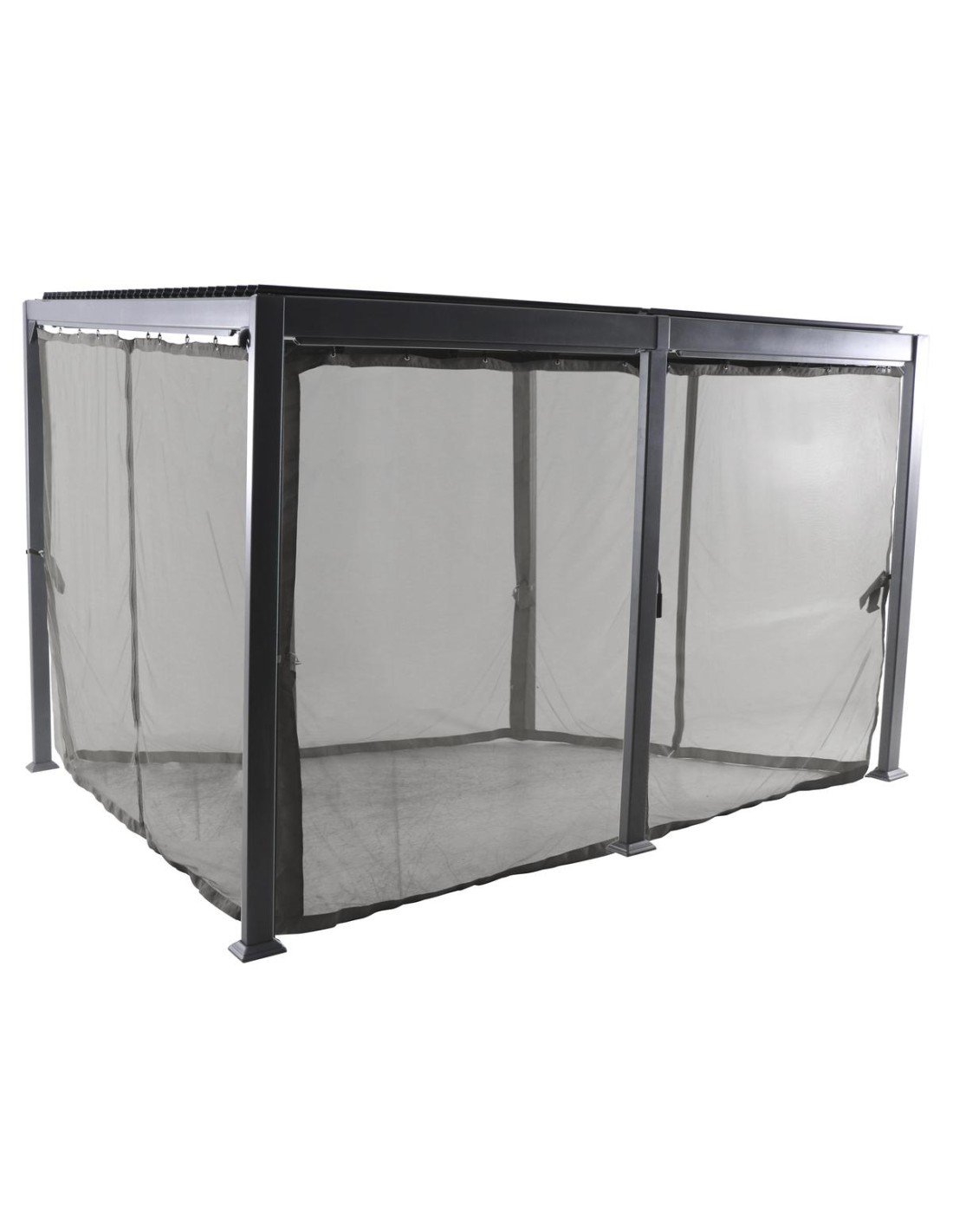 Produit sur commande. Les rideaux se fixent entre eux gréce é une fermeture éclair. Dimension produit : L. 365 x H. 220 cm. Compatibles avec Tonnelle Palmeira 3x4 Ardoise ref 116171.