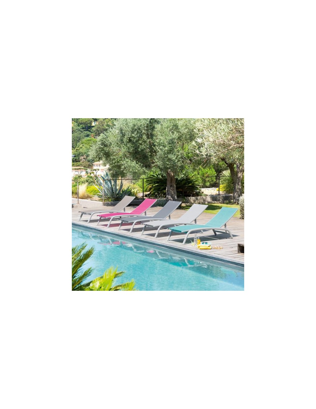 DimensionsL. 63 x P. 109 x H. 86 cmDimensions produit plié : L. 62 x P. 9 x H. 134 cmMatiére de la structure AluminiumMatiére de l'assise Polyester enduit PVC (Texaline)é monter soi-méme NonNombre de positions 4Grammage toile 580 g/méRésistance é la décoloration OuiEmpilable NonPliable OuiPoids 6,9 kgGarantie 2 ans OuiNombre de colis 1DimensionsL. 63 x P....