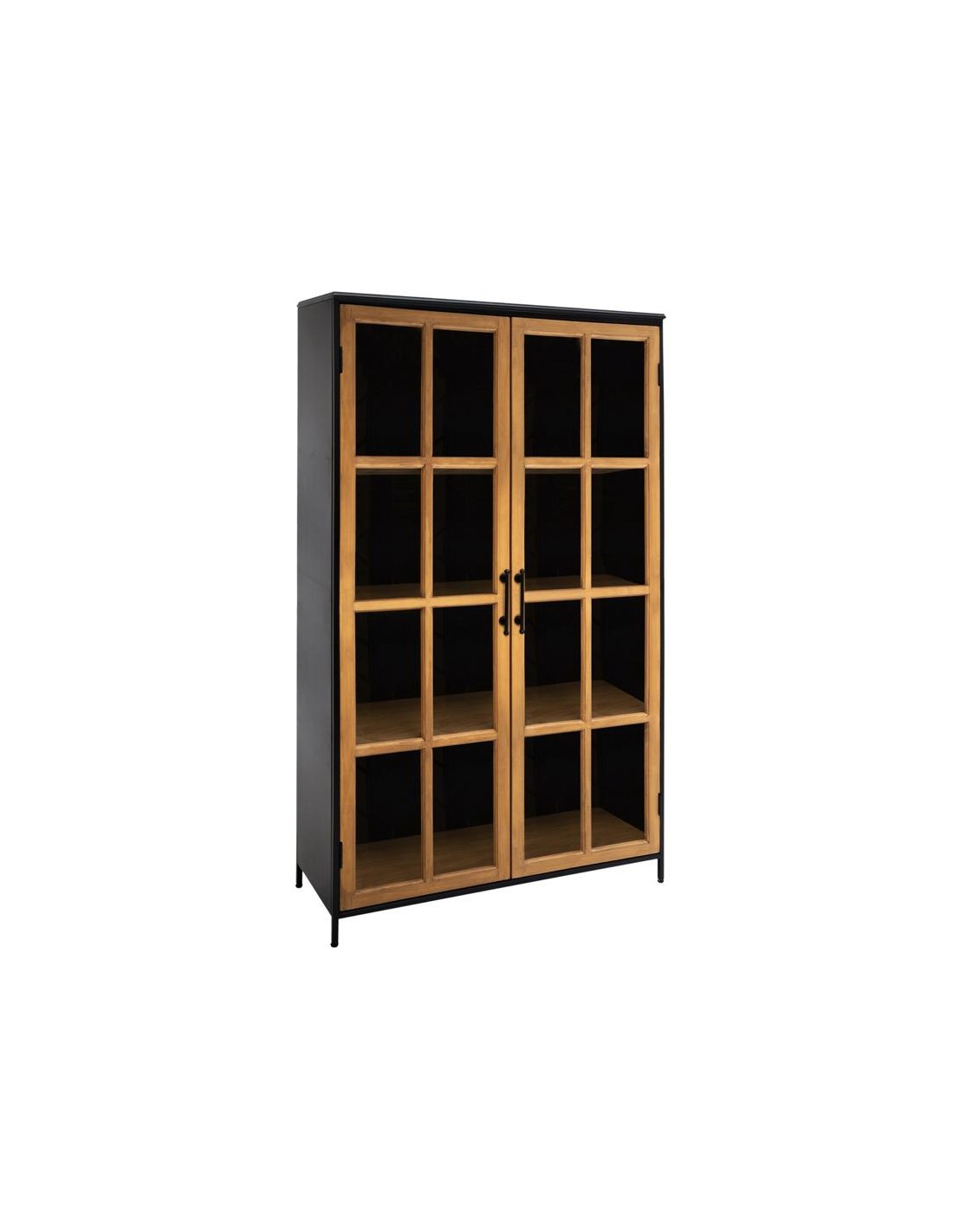 Magnifique vitrine en pin recyclé 2 portes et 6 niches avec ses pieds en bois peinture metal noir pour une atmosphere exotique modern120X42X160 HMagnifique vitrine en pin recyclé 2 portes et 6 niches avec ses pieds en bois peinture metal noir pour une atmosphere exotique modern120X42X160 H